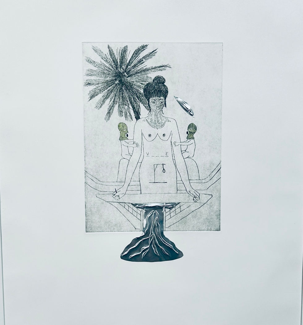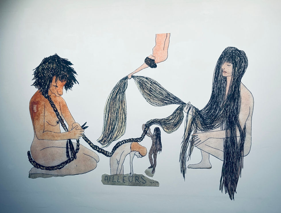 L’exposition Promesse est une cavalerie entre réel et fiction. Le trait gravé est omniprésent comme les sentiers d’un futur à repenser.