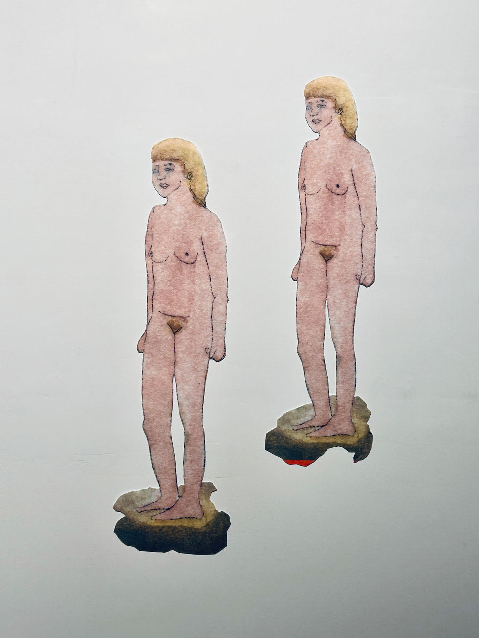 Hybridation de personnages réels et de personnages mythologiques (Bast, Artémis, etc.), ses inspirations tournent autour des questions de genre, des frontières et des points d’attache entre l’homme et la femme. Libertés requestionnées ou comment avancer dans ce monde qu’elle pensait devenir autre.